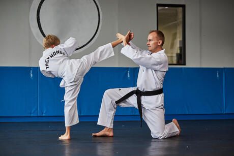 This is why the dobok should be light with a loose cut to enhance freedom of movement. A child who is new to taekwondo should choose a twill fabric dobok (190 g/sqm) that is both flexible and lightweight.
