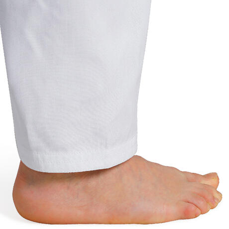 Karate gis are strengthened at the hem on the jacket and trousers.