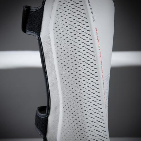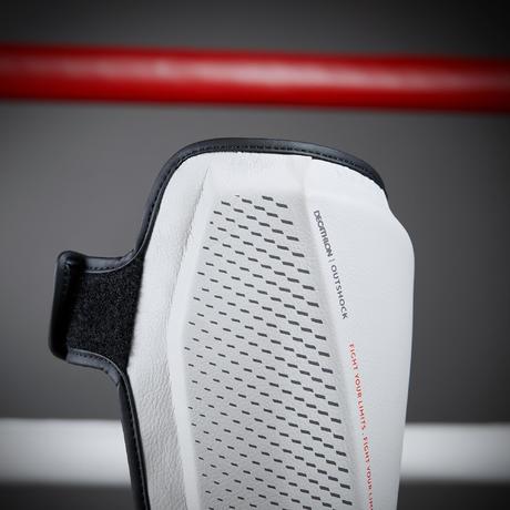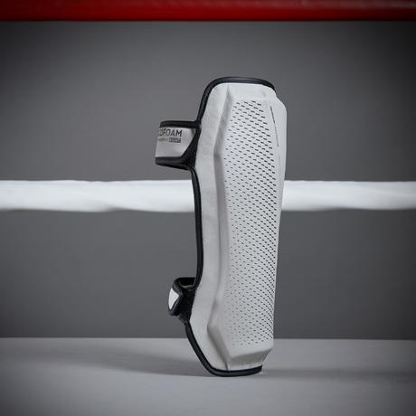 The protection provided by a product is based on two factors: 1) coverage of the zone to protect, 2) ability to absorb shocks. - To identify the protection zone, we conducted anatomical studies of the tibia. - For shock absorption, we, together with a dozen (male/female) boxers, studied the amount of energy transferred by a blow during sparring at an intermediate level, The 500 shin guard absorbs an impact of 10 joules (the standard calls for 3 joules), while remaining as lightweight as possible