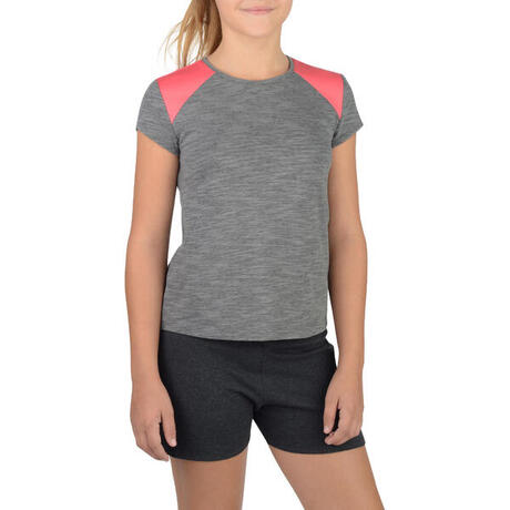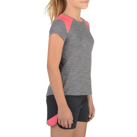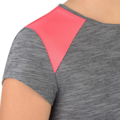 500 Girls' Short-Sleeved Gym T-Shirt - Grey/Pink