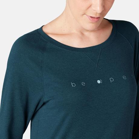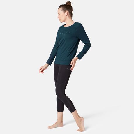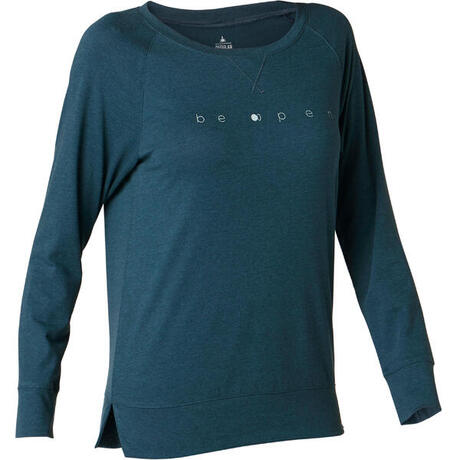 500 Women's Long-Sleeved Pilates & Gentle Gym T-Shirt - Duck Blue Print