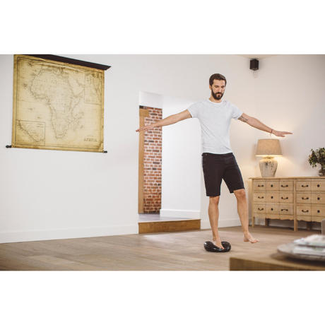 Firstly, you should not be able to feel the ground through the cushion once on top of it. If you can feel the ground, inflate it using a pump with a needle. Then you can find the right level of difficulty for you: the more inflated it is, the less your balance is challenged. Conversely, the less you inflate your Balance Soft Disc, the more stable you will be. Finally, the pimpling provides further instability and stimulates blood circulation.