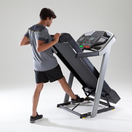 The T900 treadmill folds up to save space when not in use. When folded, you need just 133 x 88 cm of floor space.